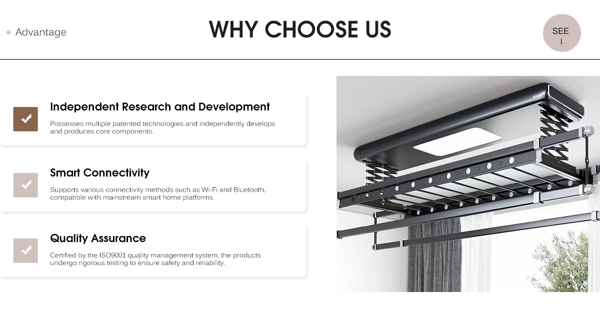 Tendedero de lavandería montado en el techo eléctrico para el hogar inteligente de alta calidad, suministro de lavandería inteligente innovador